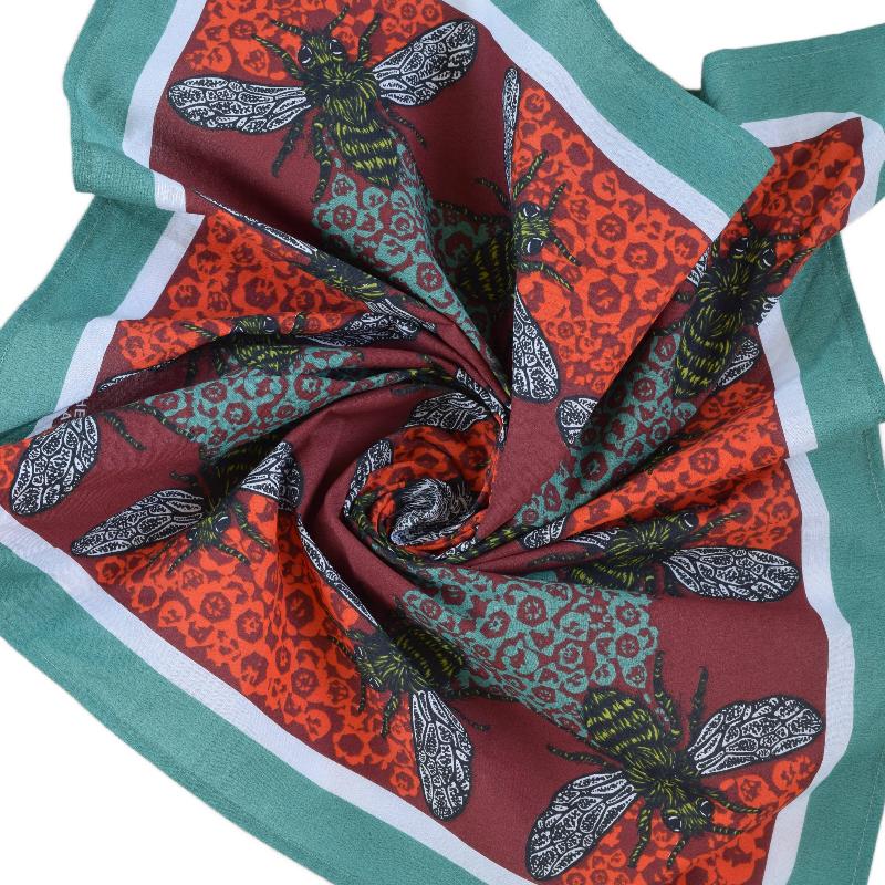 Red and Teal Honeybee Bandana - 100% Cotton Hand Printed