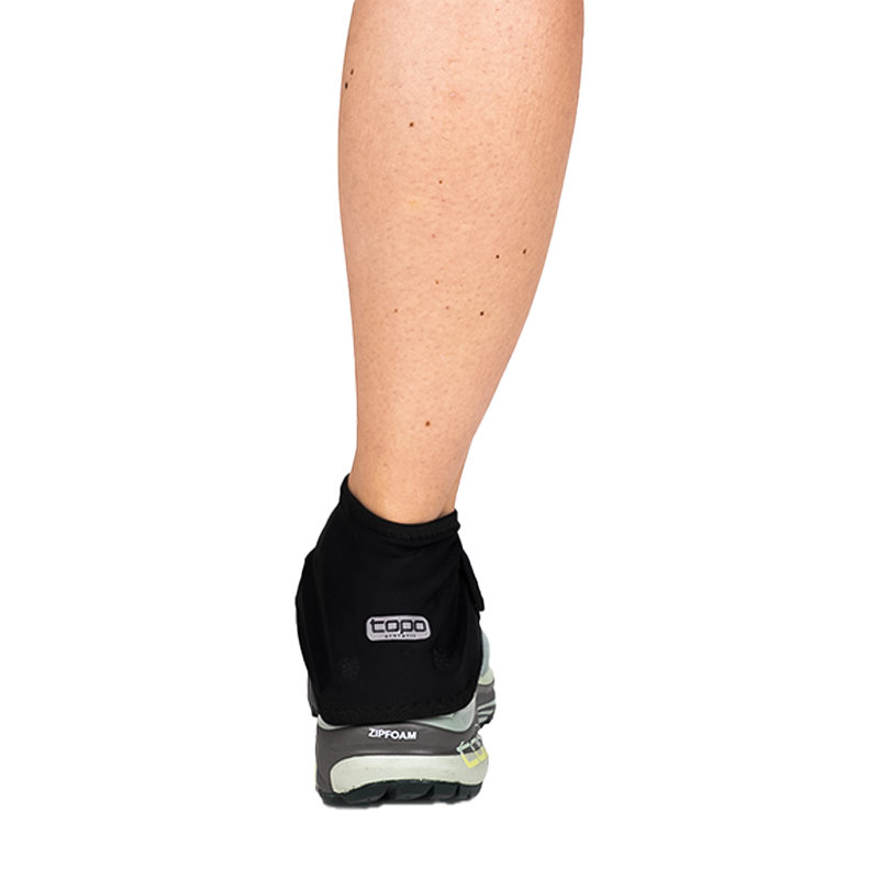 Topo gaiters are low-profile, high-performance gaiters perfect for trail running and hiking, especially in the sandy Owen's Valley. The nylon fabric is very light and breathable for warmer temps, and the hook and loop closure makes it simple to use. A velcro closure also makes it versatile with a snug fit regardless of your shoe size.